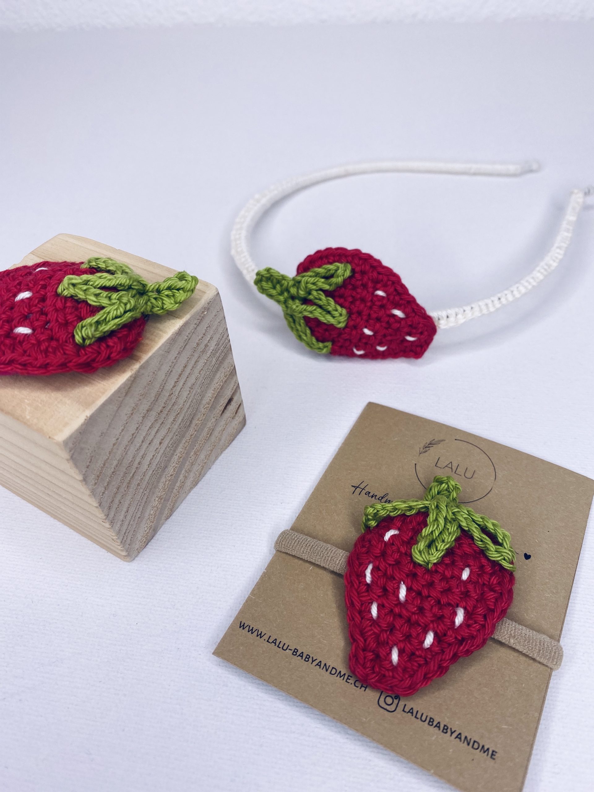Es sind immer die kleinen Details, die ein Outfit zum einem Eye-Catcher machen. Mit diesem Haargummi mit kleiner Erdbeere, kann der Sommer für dein Schatz kommen.